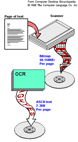 When text documents are scanned, they are "photographed" and stored as pictures in the computer. OCR software analyzes the symbols in the image and converts each letter and digit into an ASCII character.